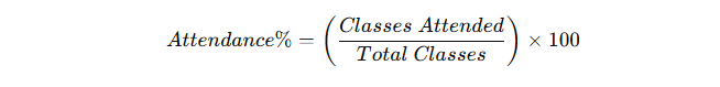 | Total Classes | Classes Attended | Calculation | Attendance % |